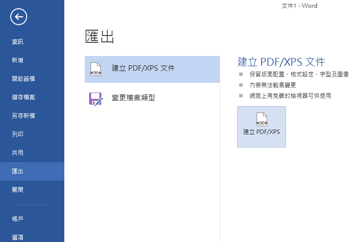 如果你在 Office 2010之後版本的應用軟體中想要將文件轉存成 PDF 格式,其實不需透過其他軟體,因為 Office 2010之後版本中已能直接轉換。 |