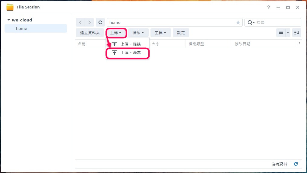步驟 7:點選『上傳』中的『上傳-覆寫』 |